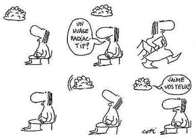 Cette femme assise suivra Copi partout : dans les colonnes de Hara Kiri, de Charlie mensuel, de Libération et du Gai Pied, auquel Copi collabore dès sa création. Pour Libération, il imaginera également le personnage de Kang, gentil kangourou non moins loufoque et véritable poil à gratter. Dans l'une de ces planches (parues en album chez Dargaud, en 1984), Kang engage une discussion : «Que préten-dez-vous, les gays ? - On veut se marier à la mairie comme les autres! - Qui vous l'interdit?- On ne trouve pas de robes de mariée à notre taille.»
